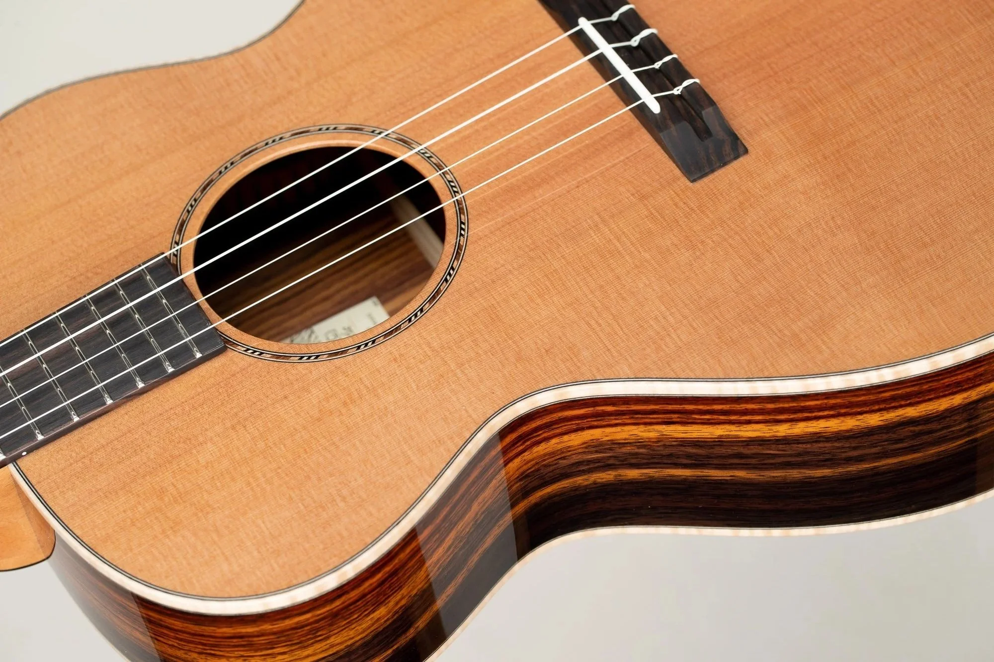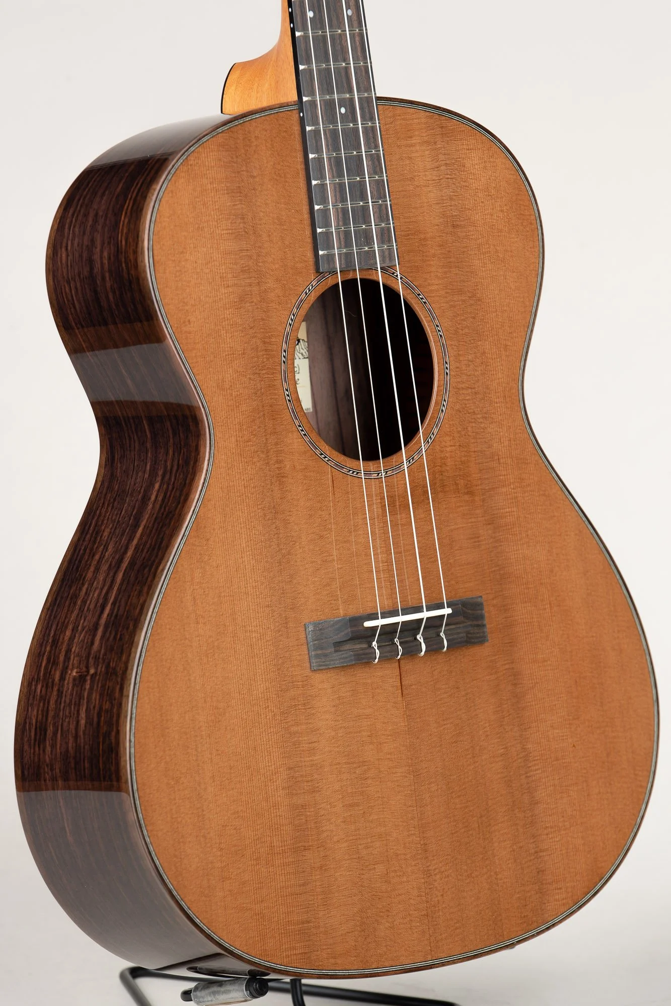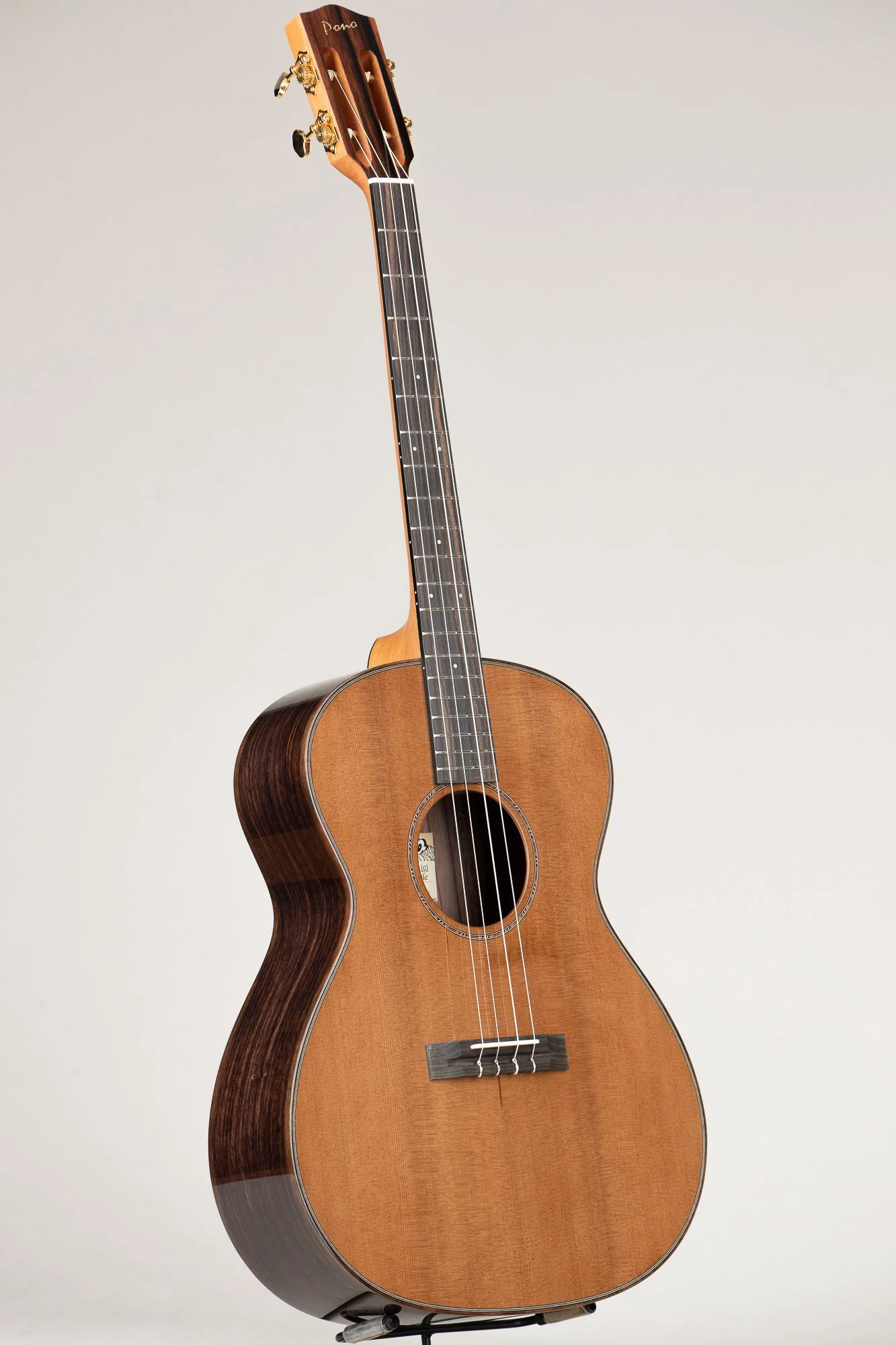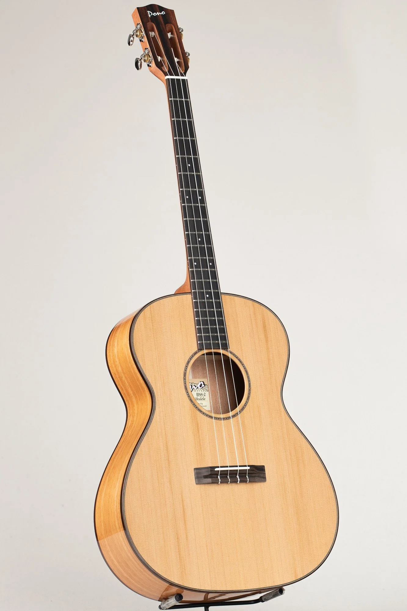 This is our BN series, which is essentially a tenor guitar size, braced for nylon strings and tuned D-G-B-E. It is a larger body and longer scale baritone ukulele. It is available with select wood options including acacia, mango, rosewood and cedar top for certain models.